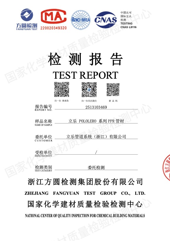 立乐POLO-LERO系列PPR管材DIN8078检测报告